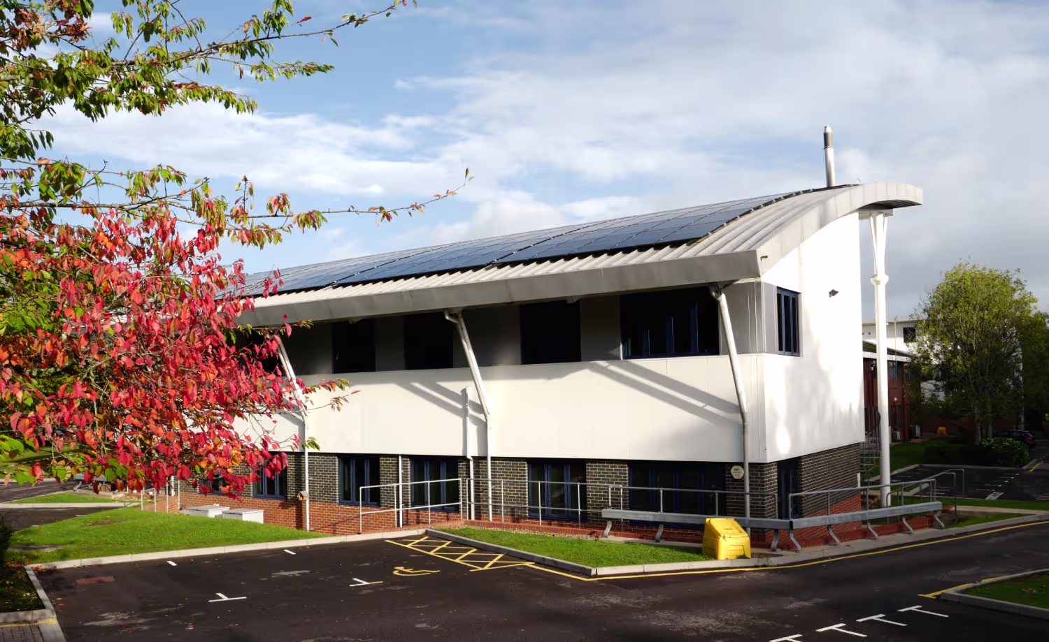 The building was first equipped with solar PV by Absolar in 2024, focusing on the south-facing roof, delivering 88 kWp of capacity to support the laboratories and office spaces inside the building.